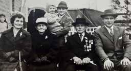 Alfons en Natalie kregen 7 kinderen: 3 meisjes en 4 jongens. De jubilarissen zitten tussen dochter Josée en haar echtgenoot Maurice Cox. Luc pronkt in de armen van zijn broer Guido.
