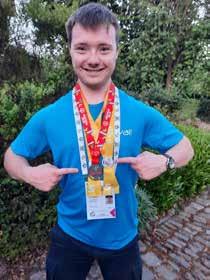 om zich voor te bereiden op zijn tiende deelname aan de Special Olympics. Naast zwemmen houdt hij zijn conditie ook op pijl met crossfit in het weekend.