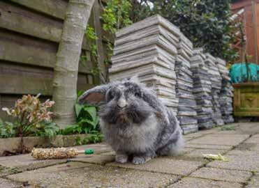 Hoe zie je dat Gerard, het konijntje in de huisdierenrubriek gelukkig is?