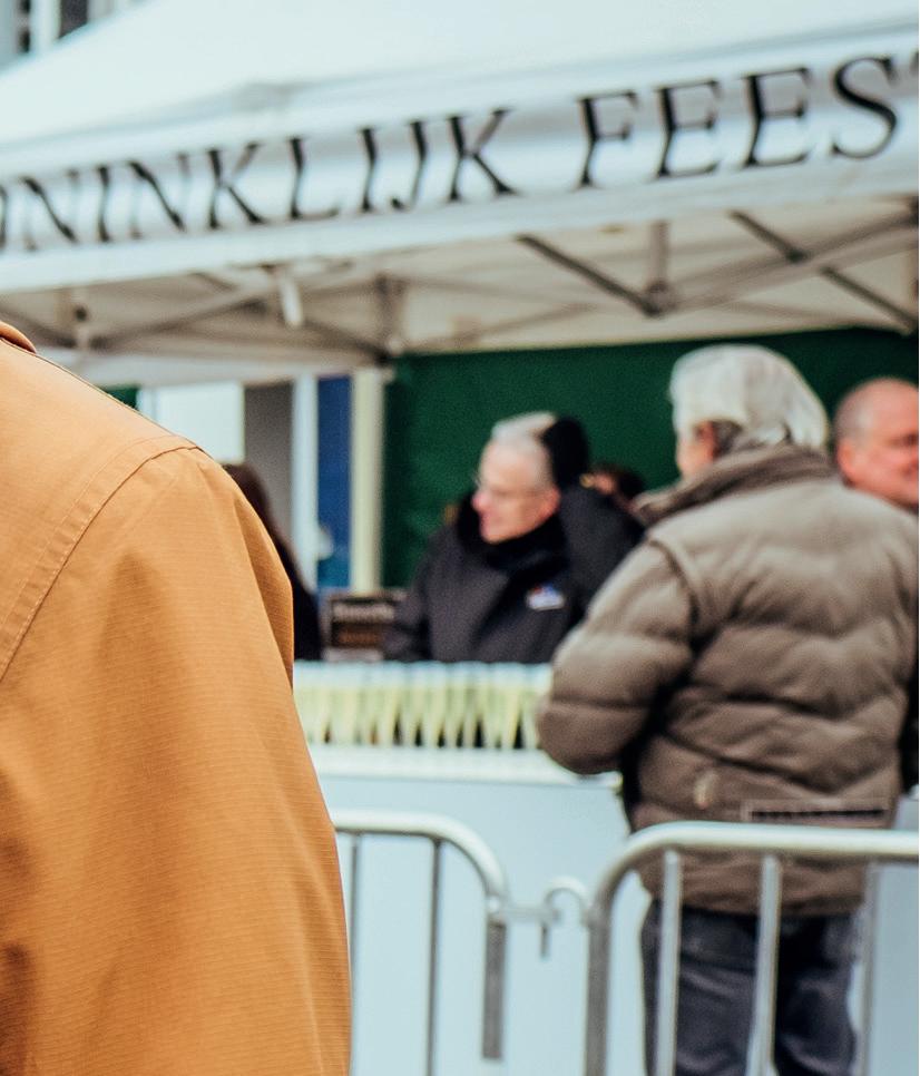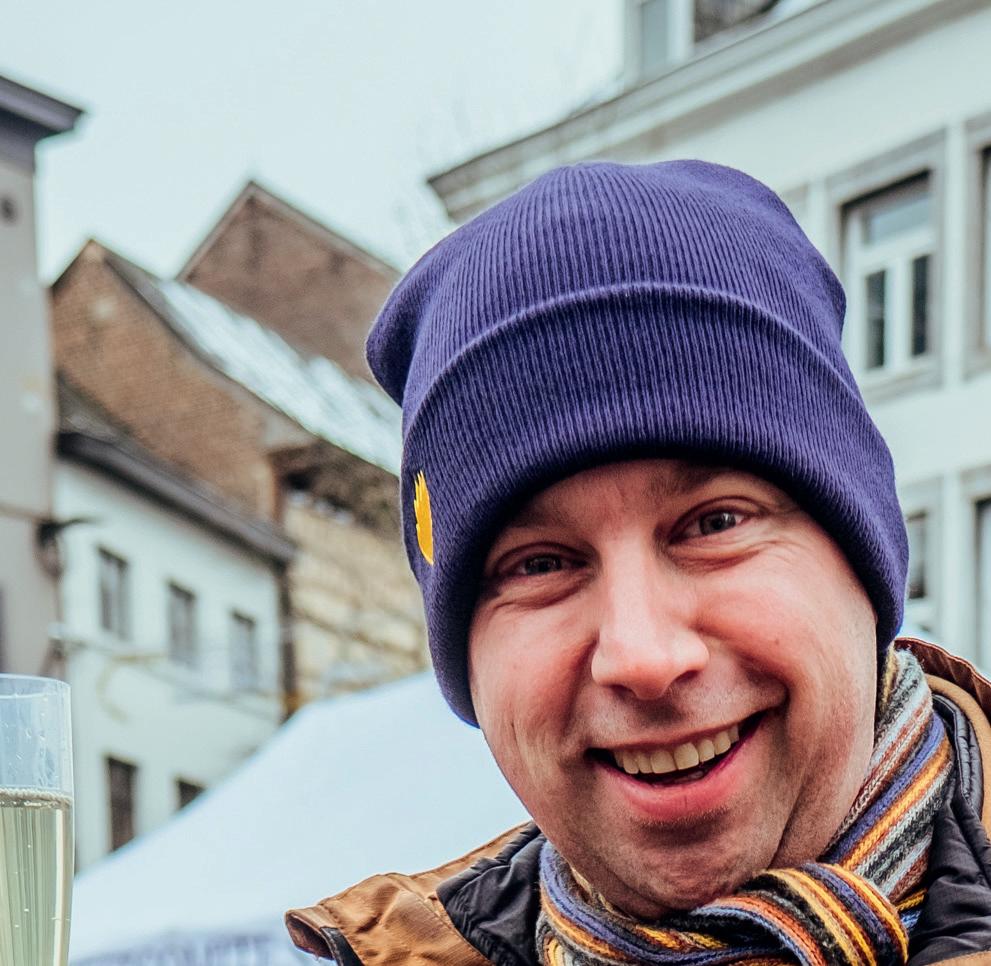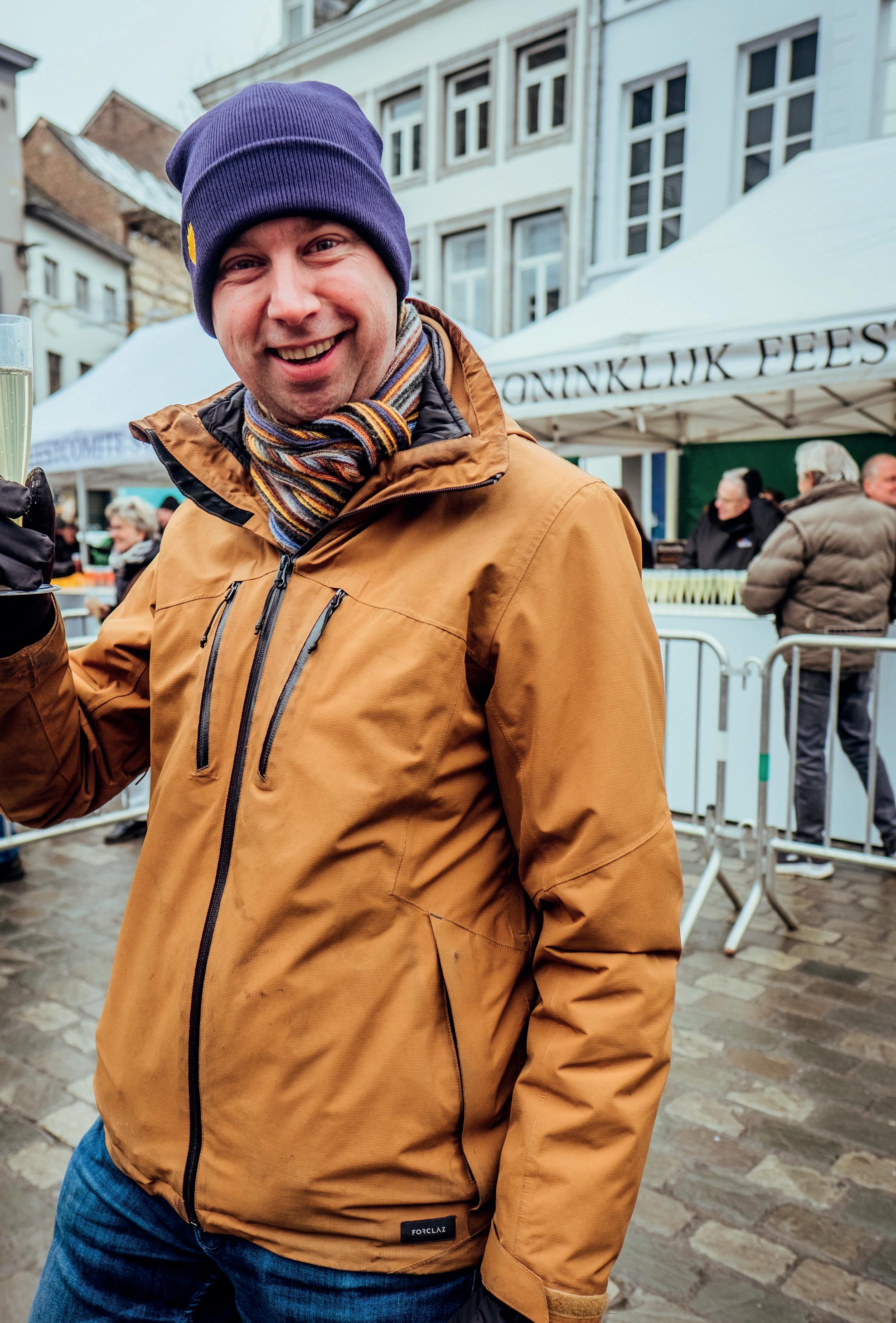 Wouter Marynissen heft het glas op het nieuwe jaar op de Grote Markt. “Altijd fijn om hier oude bekenden tegen het lijf te lopen.” Het winterweer neemt hij er graag bij. “Dat maakt het alleen maar gezelliger. Ik klink op een goede gezondheid, de vriendschap en dat we nog veel mogen genieten!”