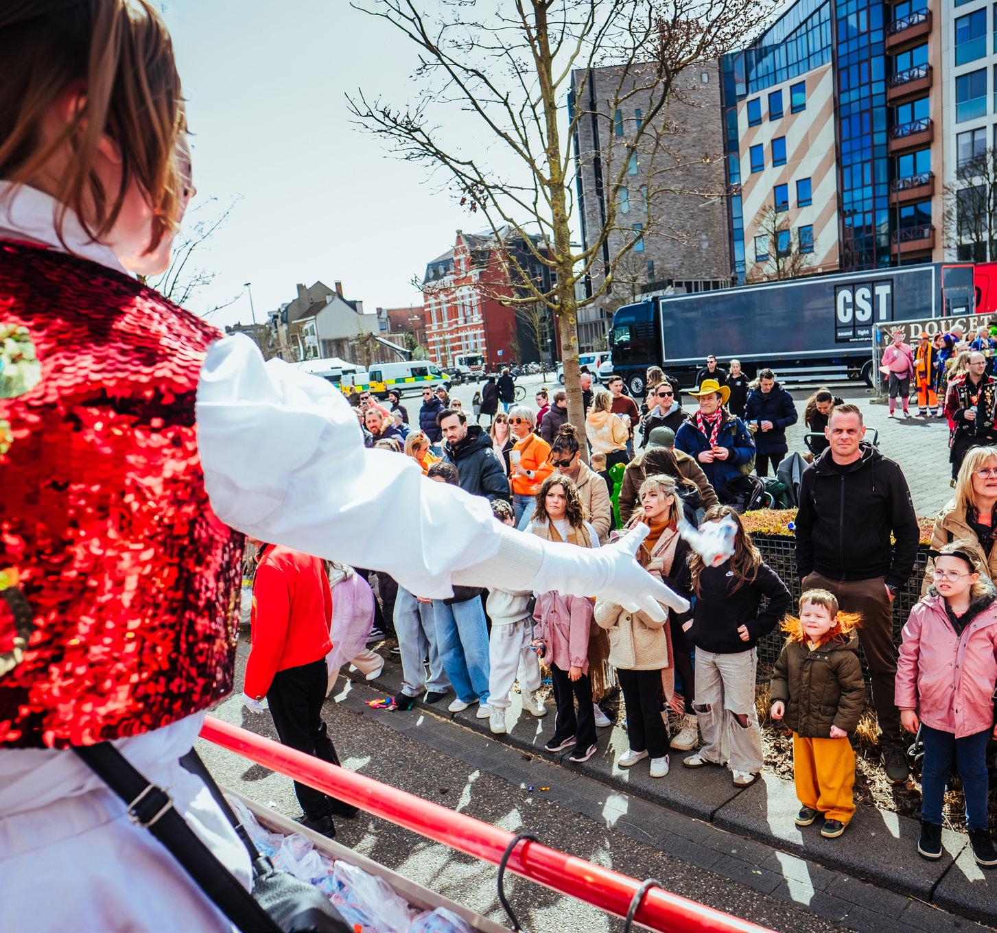 Alaaf, ’t is zover: showtime! “Iedereen neemt z’n plaats in en hup, de stoet is vertrokken! Onderweg delen we leuke hebbedingetjes uit. Ook de snoepjes strooien we rijkelijk in het rond. Gouden tip: voor verklede kinderen zijn we het vrijgevigst!”