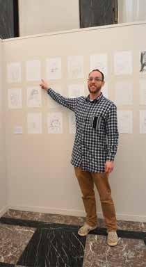 Passerel? Sabrina was een van de vrijwillige schilders voor het opfleuren van de passerel. Ze deed mee met elke namiddagsessie. Ze vond het zalig om gewoon te schilderen en aan niets anders te hoeven denken. Het gerechtsgebouw en het Sint-Hubertusplein zijn haar creaties. De horizontale streepjes zijn typisch voor haar werk. Ze hielp ook om verbindingen te maken, zoals boomblaadjes die naar een volgende tekening dwarrelen.