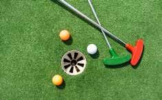 Wat? Minigolfen in een groene omgeving. Er zijn twee terreinen met 18 hindernissen waarbij je probeert om in zo weinig mogelijk slagen het balletje in het putje te slaan.