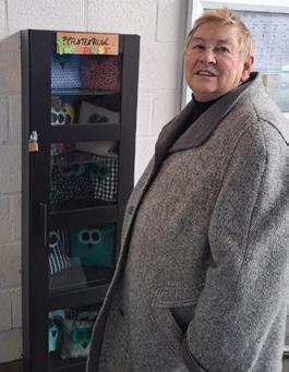 Onze zwarte creatieve kijkkast, naast het infobord, buiten aan de ingang. Het is nu onze creatieve etalage. Momenteel staat deze stampvol met prachtige uilenkussens, die met veel liefde zijn gemaakt door onze snit-en-naad-groep. De uil, de vogelverschrikkers en de pompoen waren dit jaar symbool voor het voorbije evenement Fiesta de la Calabaza. Kom dus zeker een kijkje nemen!