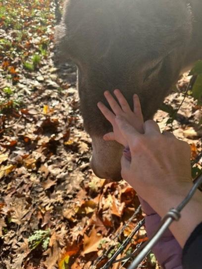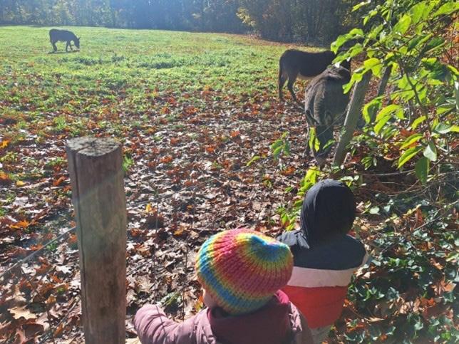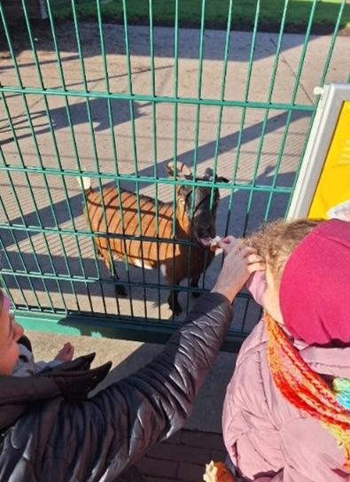 We zagen konijnen, kippen, cavia’s, geitjes, schapen en ezels. We hadden geluk, want toen we de geitjes een bezoekje brachten, was het net voedertijd.