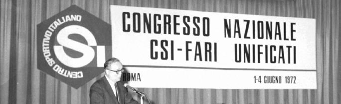 volume del libro Cent’anni di storia nella realtà dello sport italiano, per apprendere – o ricordare – che «nel 1971 vengono indetti congressi straordinari del CSI e della FARI [N.d.R. Federazione Attività Ricreative Italiane, dedicata alle donne] per la riforma dei rispettivi statuti. Nella seduta unitaria, in apertura dei congressi, le due presidenze nazionali propongono ai delegati un documento di unificazione delle due associazioni in una associazione autonoma (non più promossa dall’Azione Cattolica Italiana), nuova e diversa». Cambiamenti straordinari, come si vede, che modificarono la struttura dell’Associazione. Prosegue il racconto della storia del CSI: «Il documento di unificazione viene approvato immediatamente, pur in presenza di alcune riserve. In esso si afferma: “Il CSI e la FARI… intendono esprimere la volontà di unificare le proprie esperienze proponendosi insieme come nuova associazione, aperta ai giovani e alle giovani, dove il modo di vita è caratterizzato dal fatto che le componenti maschili e femminili sono insieme presenti, partecipi e responsabili della vita associativa a tutti i livelli, cogliendo anche, con questa