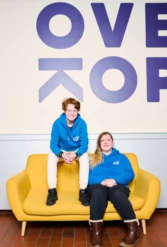 Laure Scheers en Phoebe De Kinderen zijn elke week met veel enthousiasme aan de slag in het OverKophuis. “We helpen met de activiteiten”, zegt Laure. “Alles klaarzetten en opruimen, de toog, spelletjes spelen en zoveel meer. Ik ben op mijn 15e gestart bij OverKop. Een jaartje later was ik al ambassadeur. Ik denk mee na over onze social media en overloop de planning met de coördinator.”