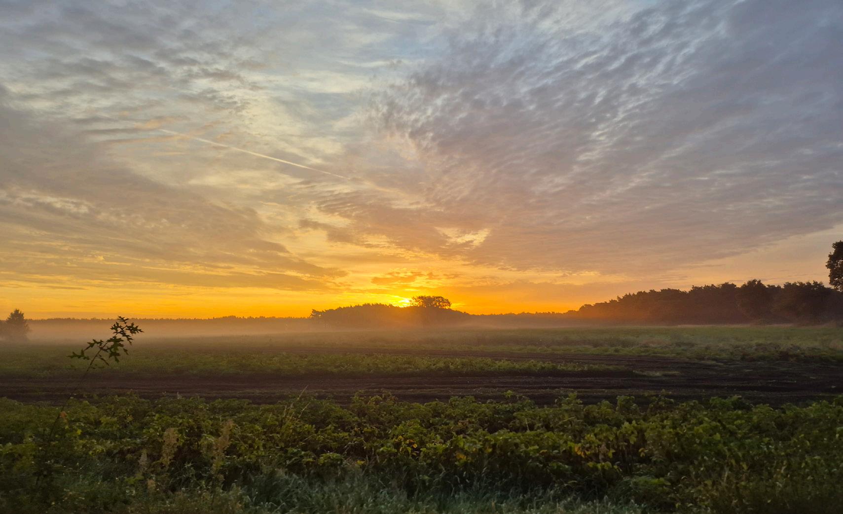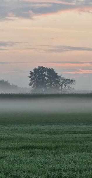 Nevelslierten slingeren in de velden