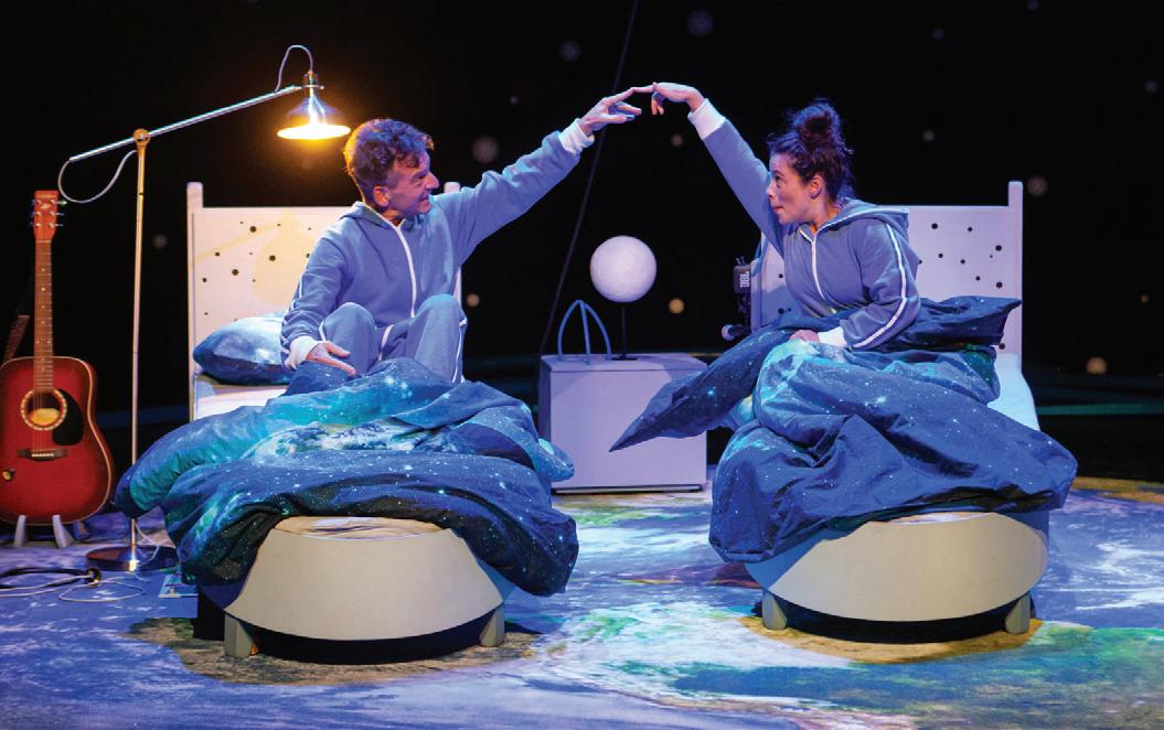Twee astronautjes in spé laten hun fantasie sneller reizen dan het licht. Hun slaapkamer ontpopt zich tot een spectaculair lanceringsplatform. Ze maken zich klaar voor de lift off. De één vol hoop, de ander met knikkende knieën. Een aanstekelijke voorstelling voor iedereen die nog weet - óf juist vergeten is - hoeveel durf er nodig is om in slaap te vallen. Een muzikale ode aan verbeeldingskracht en moed die niemand onberoerd laat.