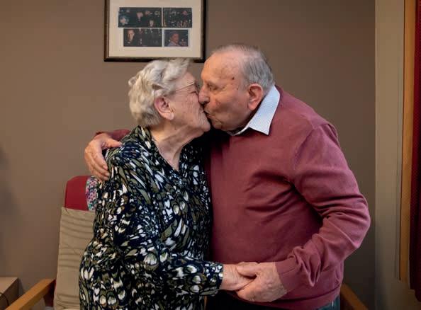 Vier jaar geleden verhuisden Michel en Mia naar woonzorgcentrum Nethehof in Balen, net over de grens met hun geliefde Kerkhoven. “Ik geniet hier nog elke dag met mijn duifje van de kleine dingen”, besluit Michel. “De krant lezen, samen tv kijken, een wandelingetje maken... We krijgen ook veel bezoek van onze drie kinderen, vijf kleinkinderen en vijf achterkleinkinderen. Dat houdt ons jong!”