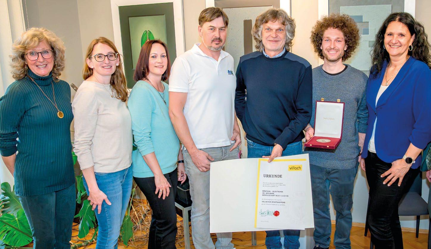 Rechtzeitig zum 80. Firmenjubiläum - das im heurigen Jahr gefeiert wird - wurde dem Unternehmen Wolbank das Stadtwappen verliehen. Die Firma wurde 1946 in Spittal gegründet und befindet sich seit 1956 am Standort in der Trattengasse. Das Unternehmen ist der führende Anbieter für Planung, Sonderkonstruktion, Installation und Vertrieb von Medizinprodukten sowie medizintechnischen Notfall-Service und Überprüfungen. 15 hochqualifizierte Mitarbeiter:innen werden beschäftigt. Am Bild: Geschäftsführer Peter Wolbank (3.v.r.) mit einem Teil seines Teams.