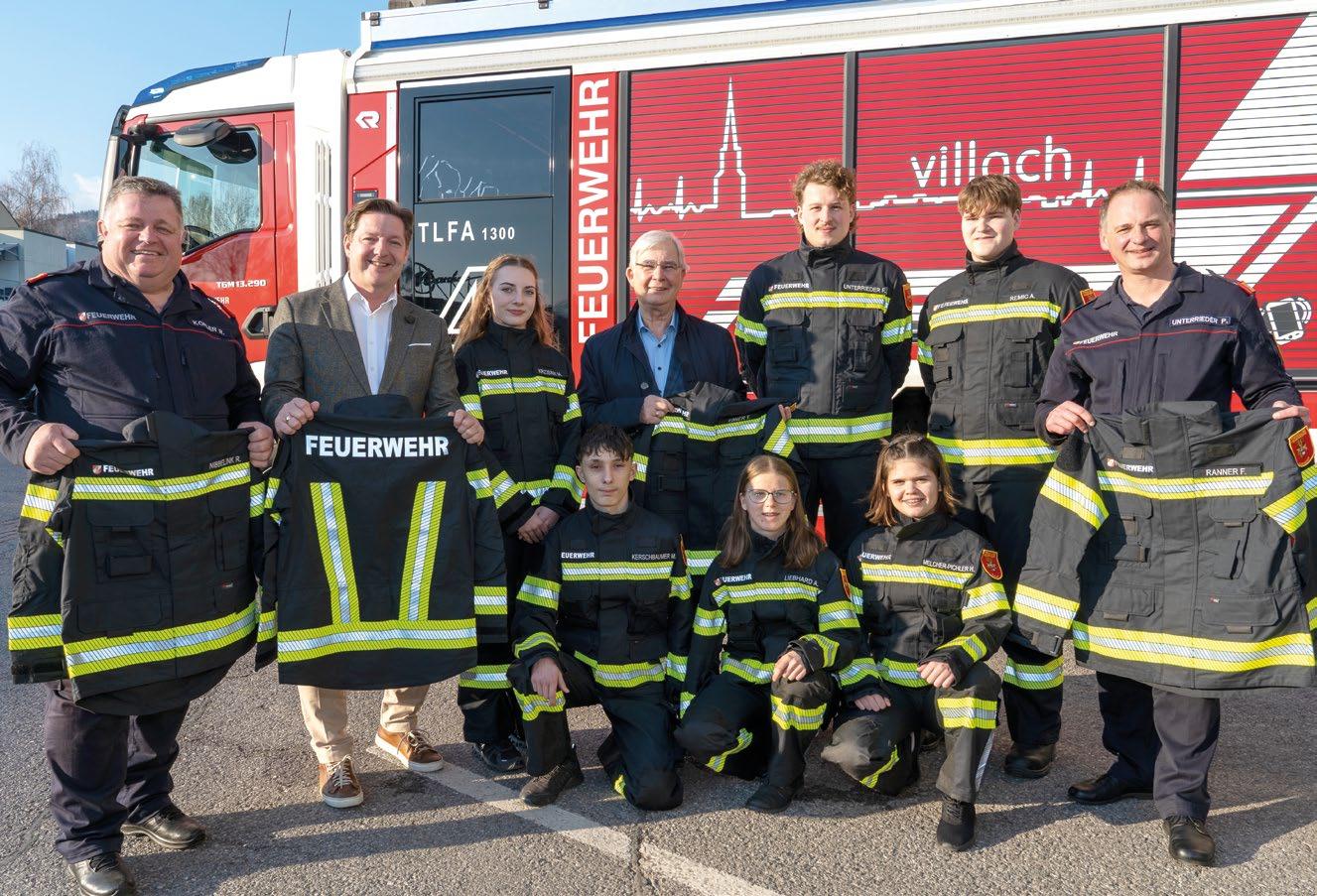 STÜTZE DER GESELLSCHAFT. Bürgermeister Günther Albel und Feuerwehrreferent Stadtrat Harald Sobe übergaben insgesamt 400 Stück an neuer Einsatzbekleidung an die Villacher Feuerwehren. Der Wert beträgt 160.000 Euro, finanziert durch die Stadt, das Land Kärnten und den Landesfeuerwehrverband. Die Feuerwehren der Stadt bieten ein Sicherheitsnetz der Extraklasse. Die Kamerad:innen sind rund um die Uhr einsatzbereit und kümmern sich um die Sicherheit der Villacher:innen. Gute Ausrüstung ist eine wichtige Voraussetzung dafür.