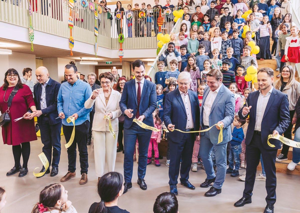 Meilenstein für die Villacher Bildungsoffensive, der Bildungscampus - Am Stadtpark wurde Ende März feierlich eröffnet. Das generalsanierte Gebäude bietet den Schüler:innen der VS 1 die besten Voraussetzungen für ein erfolgreiches Lernen. Im Herbst ziehen noch zwei Kindergartengruppen und zwei Kindertagesstättengruppen ein. Bürgermeister Günther Albel begrüßte bei der Eröffnung unter anderem Bildungslandesrat Peter Reichmann.
