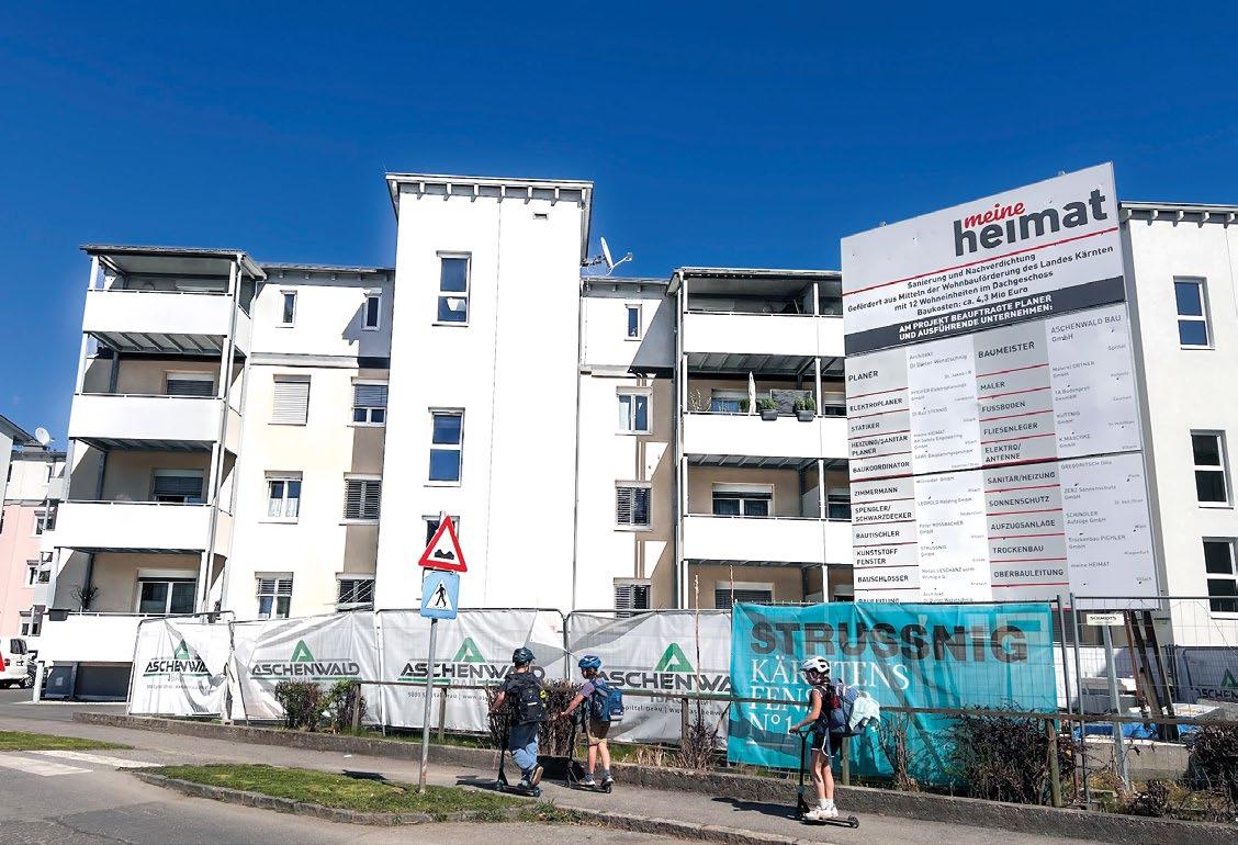 lach gebaut. Gerade erst werden bestehende „meine Heimat“-Gebäude in der Millesistraße aufgestockt. Zwölf neue Wohnungen sind schon entstanden, zwölf weitere werden gebaut. In St. Magdalen werden gerade von der Landeswohnbau Kärnten 35 Wohnungen mit Tiefgaragen errichtet, in St. Leonhard entstehen in Summe 75 Wohnungen. Auch in Maria Gail wird bereits an 24 Wohneinheiten gearbeitet. In den kommenden Monaten beginnen zudem die Arbeiten an 12 Wohnungen in St. Martin, nahe der Eishalle. Insgesamt werden im Rahmen der Wohnbau-Offensive deutlich über 60 Millionen Euro investiert.