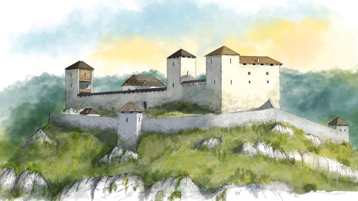 Virtuell rekonstruiert: So könnte die einst mächtige Burg Federaun bei Warmbad ausgesehen haben. Die Story dazu gibt es im Jahrbuch.