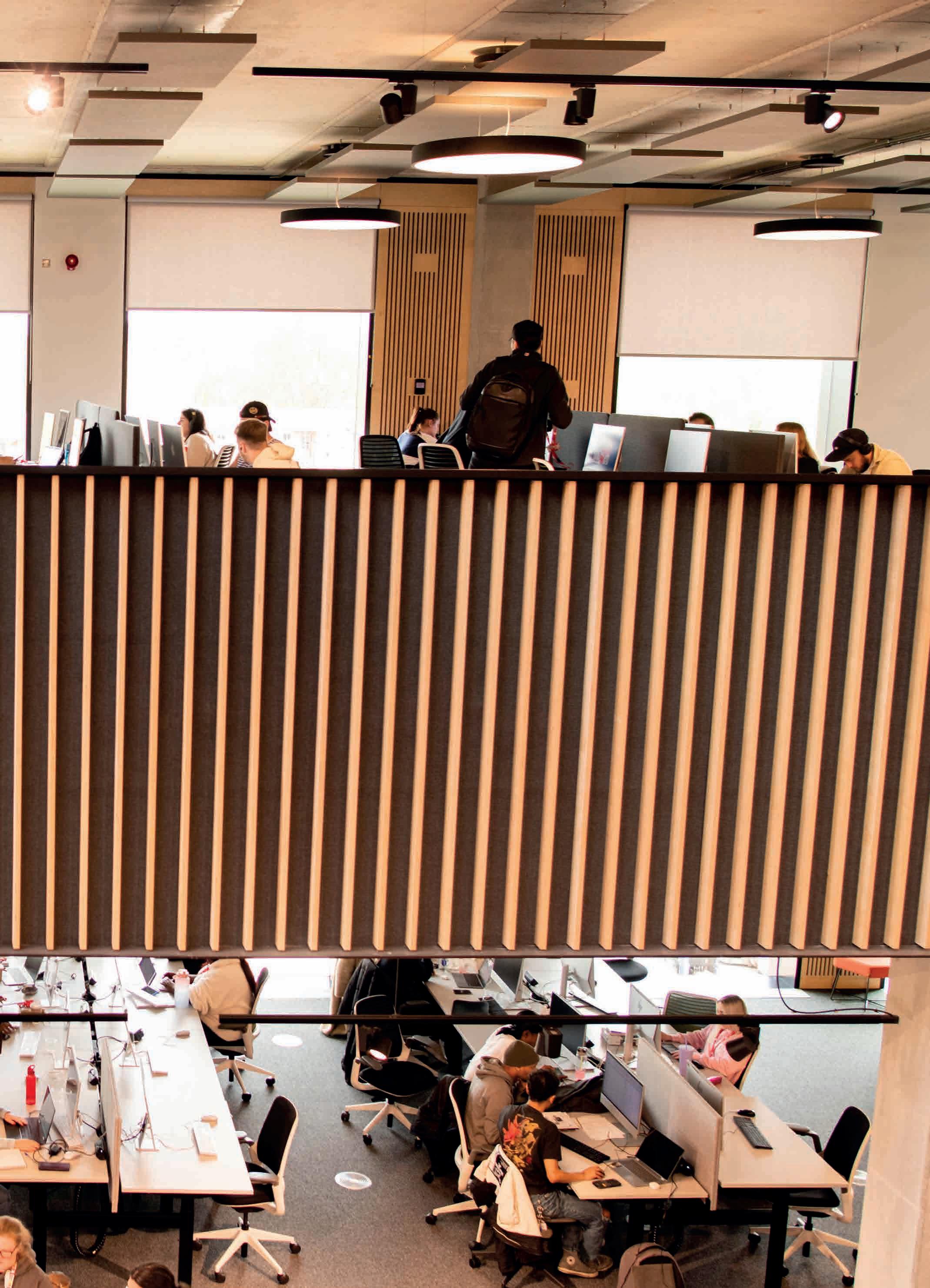 Students can explore their creativity in the SmartZone. Here, you will find material cutting tools, 3D printers, games spaces, animation studios, AR labs and VR labs.