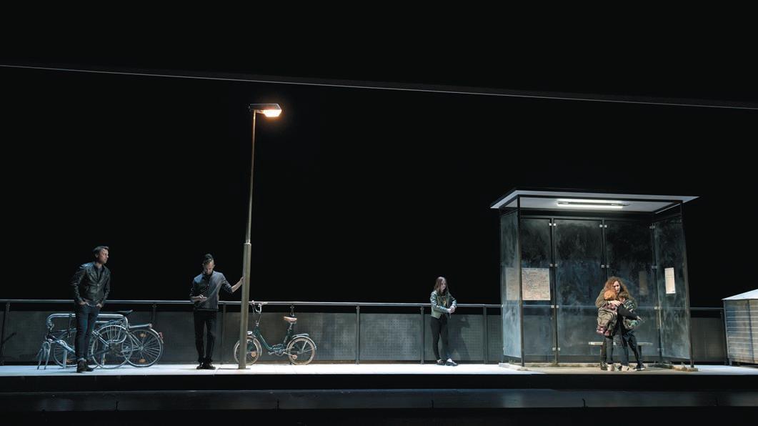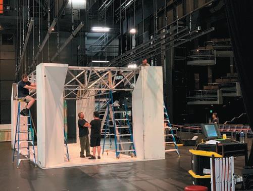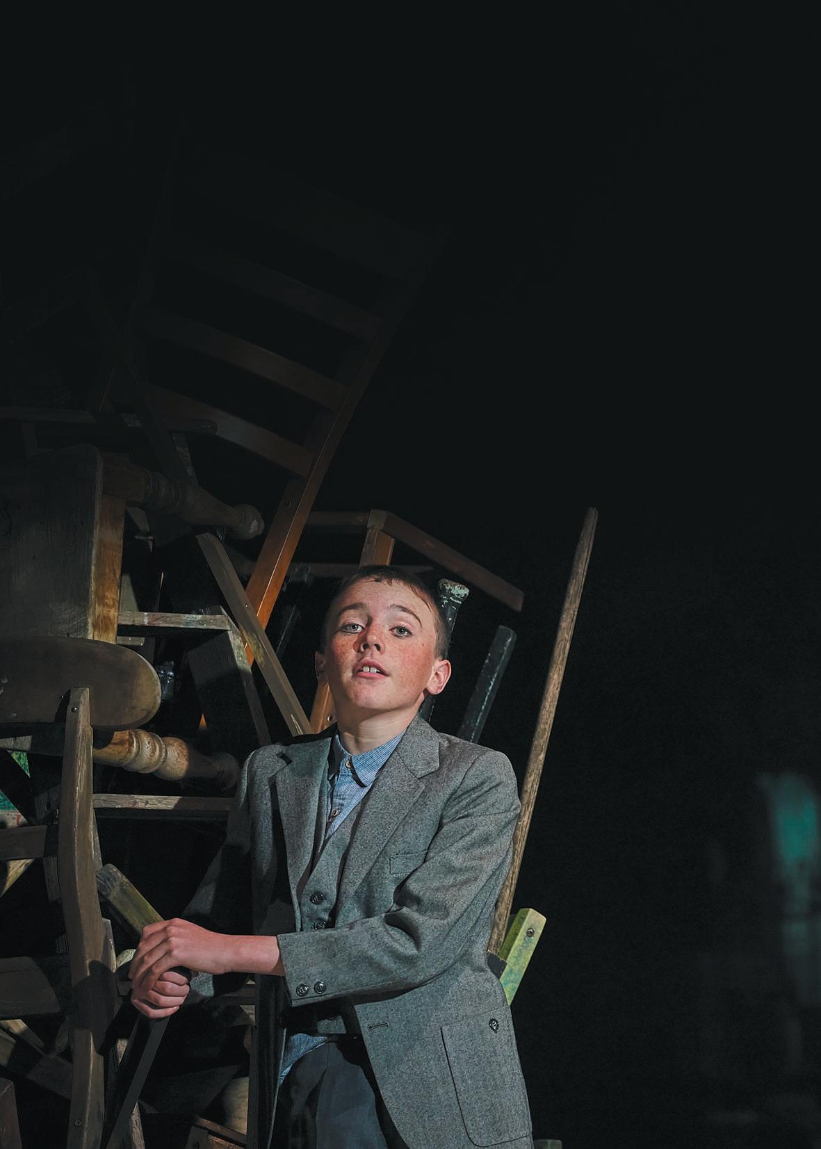 “The world has exploded, and everything is a mess. I wanted to also signify something spiritual up high, but I found out a week before that the boy playing the narrator was afraid of heights. So, I made little handholds for him to hang on to and feel safe. I adapted the set to suit. I even put him in little ballet flats so he could feel what was under his feet. I also wanted the light to come through the structure, so that there would be a halo sort of effect.