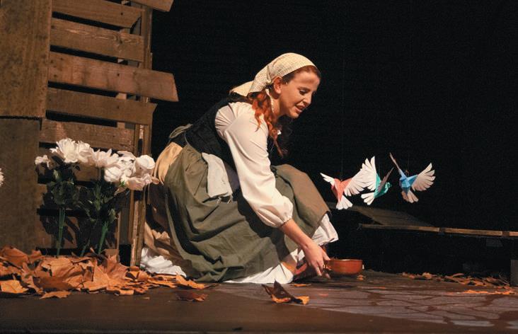 “I wanted to keep it simple because the projections (created by students) were so good (they included a country town, battlefield and inside a farmhouse). My philosophy is to recycle everything. I didn’t buy anything new as there is so much waste in theatre. The only thing I hired was the nurse’s outfit, because it would cost more to make than to hire.”
