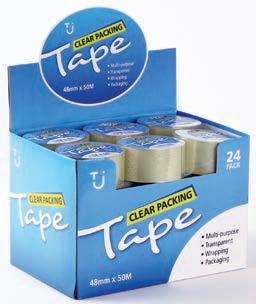 11 ADHESIVE TAPES 48mm x 50m Clear Packaging Tape CDU 50mm x 33m Fragile Tape Hang Pack 48mm x 50m Brown Packaging Tape CDU 18mm x 40m Clear Tape Twin Pack CDU 48mm x 40m Brown Packaging Tape 24mm x 40m Clear Tape CDU 19mm x 33m Tape + Dispenser + 1 Roll Free Hang Pack Invisible Tape 19mm x 25m Hang Pack Large Tape Dispenser Boxed SR1102 £1.89 Pkd 24 TJ04 SR1106 £1.69 Pkd 24 TJ03 SR1107 £1.39 Pkd 36 TJ02 SR1103 £1.79 Pkd 6 TJ05 SR1104 £1.79 Pkd 36 TJ05 SR1110 £2.49 Pkd 24 TJ01 SR1109 £1.99 Pkd 12 TJ17 SR1101 £1.89 Pkd 24 TJ11 SR1105 £1.89 Pkd 6 TJ14 SR1108 £4.99 Pkd 10 RPTD500B TWIN PACK 2 ROLL