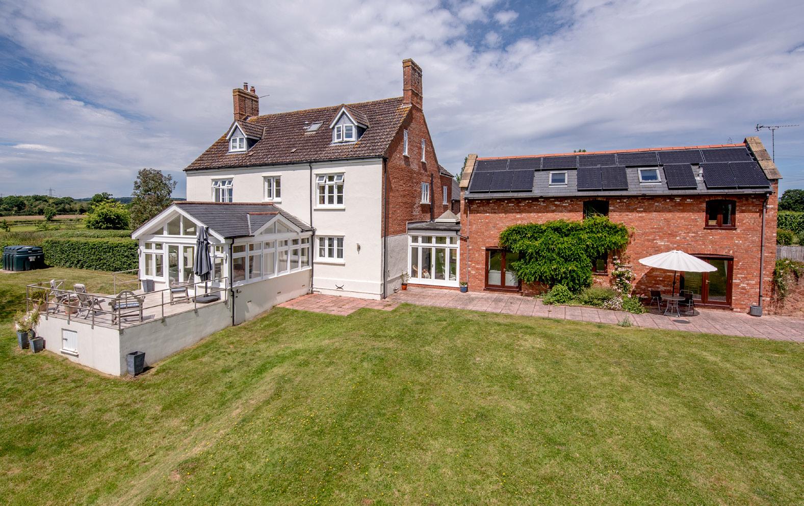 An attractive family home with seven-bedrooms, an adjoining twobedroom barn conversion, pretty gardens and grounds and access to the field with a fully enclosed agricultural barn.