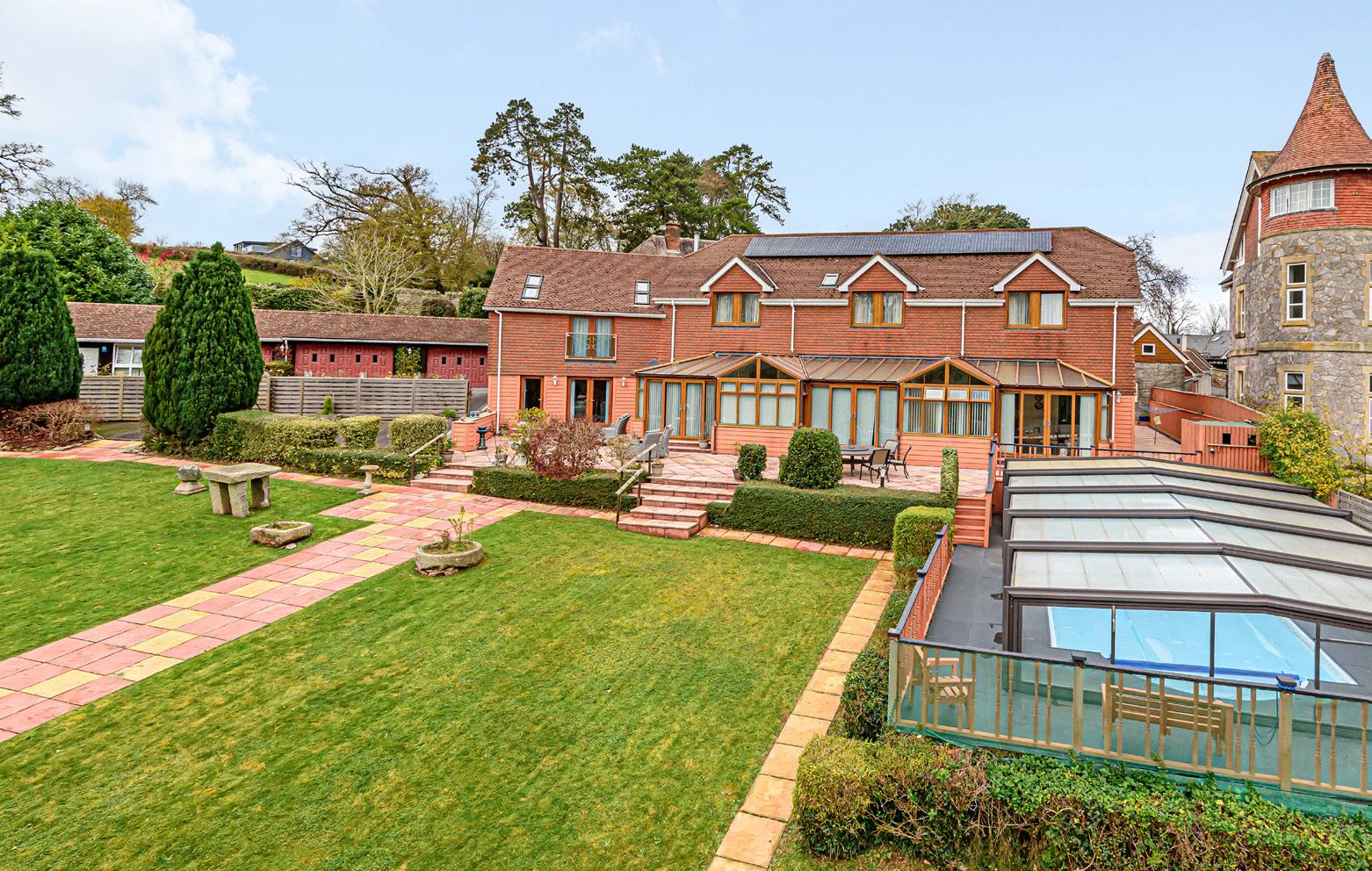 A substantial and spacious property on the highly regarded Court Grange Estate with a 4,000 sqft main residence, two additional units of accommodation, covered outdoor pool, garages and private grounds.
