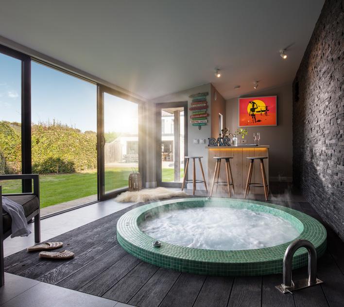 Externally, the attractive gardens are mostly laid to lawn with a raised patio and large decked area offering an idyllic spot for alresco dining. The spa room is a fantastic addition to the accommodation with a sunken hot tub, built in bar with kitchen units and an attached, fully tiled wet room with an outdoor washoff point, perfect for rinsing off your wetsuit/swimwear after