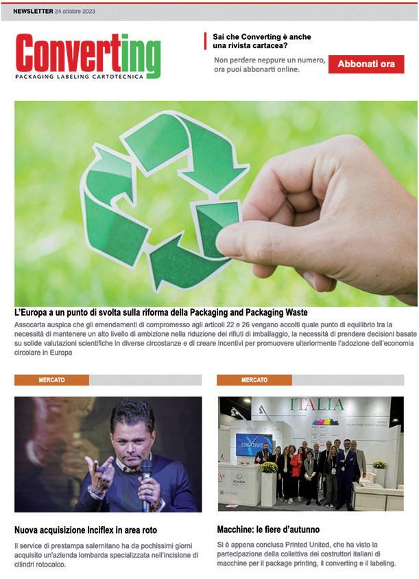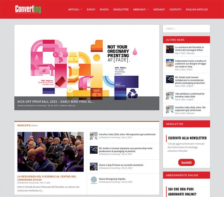 www.convertingmagazine.it, sempre in edizione bilingue, offre un aggiornamento quotidiano sulla filiera, con articoli e una serie di video interviste con i protagonisti del settore, clienti e fornitori.