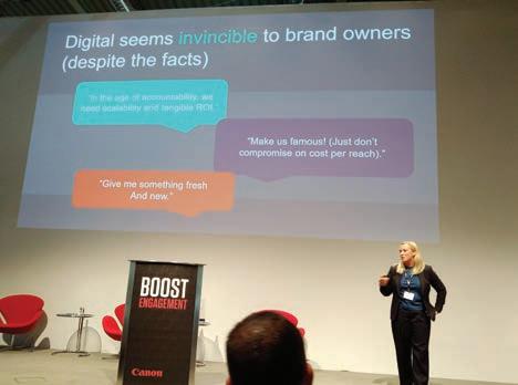 combinazione tra comunicazione stampata e digitale all’interno del negozio. Per questo saranno sempre più richieste tecnologie di stampa versatili e semplici da utilizzare. «Come la nuova Pro9541WT – aggiunge Lopez – progettata per effettuare la personalizzazione direttamente in store». Secondo il management Canon, sebbene alcuni mercati siano in flessione, i volumi di crescita in alcuni segmenti applicativi – come quello dell’interior decoration – sono destinati ad aumentare. L’introduzione della nuova Colorado 1650 nasce proprio dal desiderio di venire incontro a questa nuova tipologia d’utente. Grazie alla tecnologia Océ FLX finish, infatti, è possibile ottenere effetti lucidi o opachi su ogni singolo foglio stampato, senza dover cambiare tipologia di supporto o