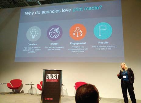 produzione tenendo conto di fattori ormai imprescindibili come la personalizzazione, la sostenibilità ambientale e l’anticontraffazione», ha esordito Domenico Beraldi, sales manager Graphic Arts Italy Xeikon, riferendo come si aggiri intorno ai 31 miliardi di dollari il valore globale atteso per i prodotti di marketing personalizzati entro il 2021, con un aumento del 55% rispetto al 2016. Un cambiamento di mercato cui Xeikon - viene ricordato - risponde con soluzioni digitali a bobina ad alta produttività, con una rinno ata fid cia nel toner The power of dry toner è la campagna lanciata agli Hunkeler Innovation days di Lucerna, e che il produttore belga si prepara a portare anche a Drupa 2020), assicurando ai suoi clienti la sostenibilità dei suoi consumabili. «In Xeikon sviluppiamo tutto, dal toner alla macchina da stampa, non abbiamo partner terzi», ha aggiunto Beraldi. Ma chi, meglio di chi le usa ogni giorno, può raccontare come si lavora sulle tecnologie prodotte dalla divisione di Flint Group? Ospiti e relatori dell’evento erano Ivan Marchi, general manager di Leaderform, Marco Giovanelli, ceo di The Factory, Silvia Argalia, sales and marketing director di AGE - Argalia Editore, Francesco Proia, corporate strategy director Incentive Promomedia, Simone Giongrandi, digital printing production manager Incentive Promomedia. Aziende che si sono aperte a opportunità di business con le soluzioni digitali targate Xeikon. Come ad esempio Promomedia, nata come agenzia di comunicazione ormai quasi 40 anni fa e che l’anno scorso ha prodotto 6.200 chilometri di stampati in digitale, prevalentemente per i volantoni della Gdo. Ed è proprio per rispondere alle mutate esigenze della grande distribuzione (in tirature e personalizzazione) che l’azienda si è affacciata al digitale, investendo negli ultimi cinque anni in due macchine Xeikon, con le quali oggi supera il milione di click al mese. E per quanto in ambiti diversi, anche gli altri stampatori hanno raccontato il cambiamento del mercato, che oggi impone personalizzazione, tirature più basse e tempi di consegna sempre più stretti. Come orientarsi in questo quadro mutevole? La sintesi la dà Silvia Argalia di AGE - Argalia Editore: «Bisogna fare investimenti in tecnologie in previsione di come si orienteranno le esigenze dei clienti».