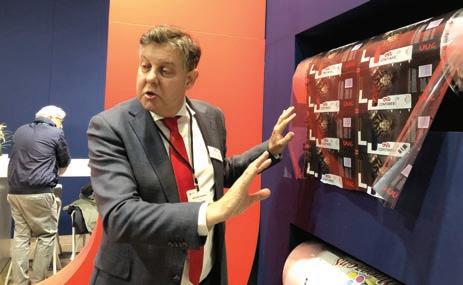 che si fa promotrice di tecnologie ecosostenibili. «A breve presenteremo la nuova guida alla stampa di tessuti con tecnologie Hp Latex e Hp Stitch, proprio per offrire ai clienti informazioni tecniche ma anche spunti per creare nuove applicazioni nell’ambito del soft signage e dell’interior decoration». Anche Bompan ha dimostrato attenzione alla sostenibilità, presentando la nuova generazione di soluzioni per stampa e taglio della Serie Plus dotate di nuove confezioni di inchiostro abbinate a cartucce ecologiche riutilizzabili che assicurano un risparmio del 15% sui costi dell’inchiostro. Per Smurfit Kappa Viscom è stata l’occasione per mostrare come sia possibile unire innovazione e sostenibilità. La Display division dell’azienda, in collaborazione con gli studenti di Ingegneria Industriale dell’Università dell’Aquila, ha sviluppato un display che, integrando la tecnologia NFC, diventa un efficace strumento di marketing in grado di fornire informazioni sul prodotto ma anche favorire l’interazione tra azienda e cliente, il rilancio di campagne social e l’accesso diretto all’e-shop.