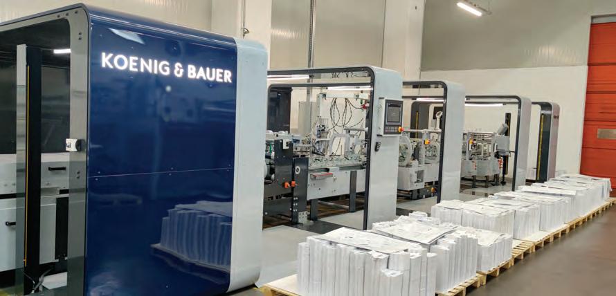 Ormai da parecchi anni Kolbus si è specializzata nella produzione di macchinari per la realizzazione di packaging di lusso e di imballaggi in cartone ondulato e oggi Kolbus Autobox AB300 (nella foto) - la più moderna scatolatrice presente sul mercato, in grado di produrre oltre 100 modelli diversi di scatole - può essere dotata della unità di stampa digitale integrata DP 300, con 4 testine di stampa no a 360 dpi, motorizzate e autopulenti, in grado di soddisfare tutti i requisiti di una stampa di alta qualità. La rivoluzionaria tecnologia di stampa dal basso, dotata di un’interfaccia utente totalmente integrata nel pannello touch screen della AB 300, permette di stampare velocemente su qualunque tipo di scatola prodotta, utilizzando inchiostri a base d’olio per un risultato nale estremamente preciso nei dettagli. La versatilità di AB 300, unita alle elevate prestazioni della Stampante digitale DP 300, rende la linea Kolbus uno dei prodotti più innovativi e performanti oggi presenti sul mercato.