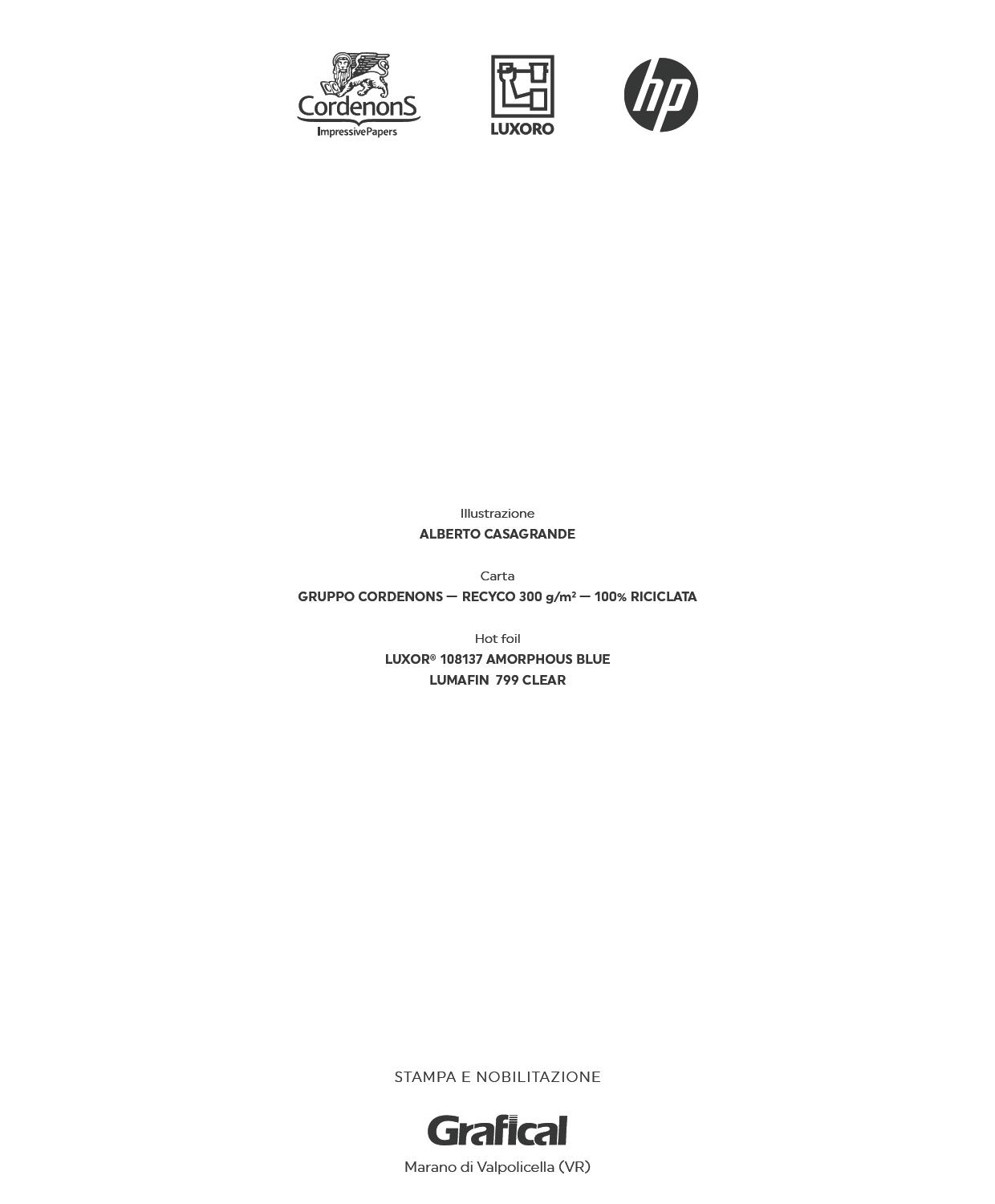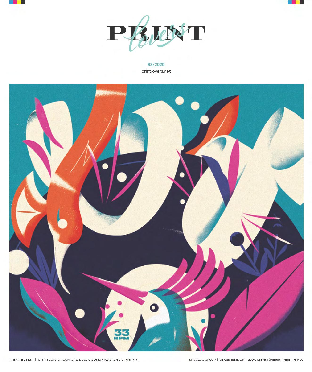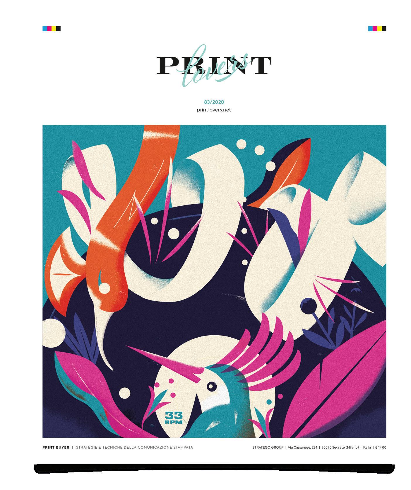 L’illustrazione dedicata alla musica è stampata con tecnologia digitale HP Indigo, più due successivi passaggi a caldo. La stampa digitale ha permesso la realizzazione di 15 versioni diverse della controcopertina grazie all’uso del dato variabile. Sono state create 15 coppie di colori abbinate a scritte che richiamano ogni volta un genere musicale diverso utilizzando i nuovi colori fluo di HP Indigo: rosa, giallo, verde e arancione.