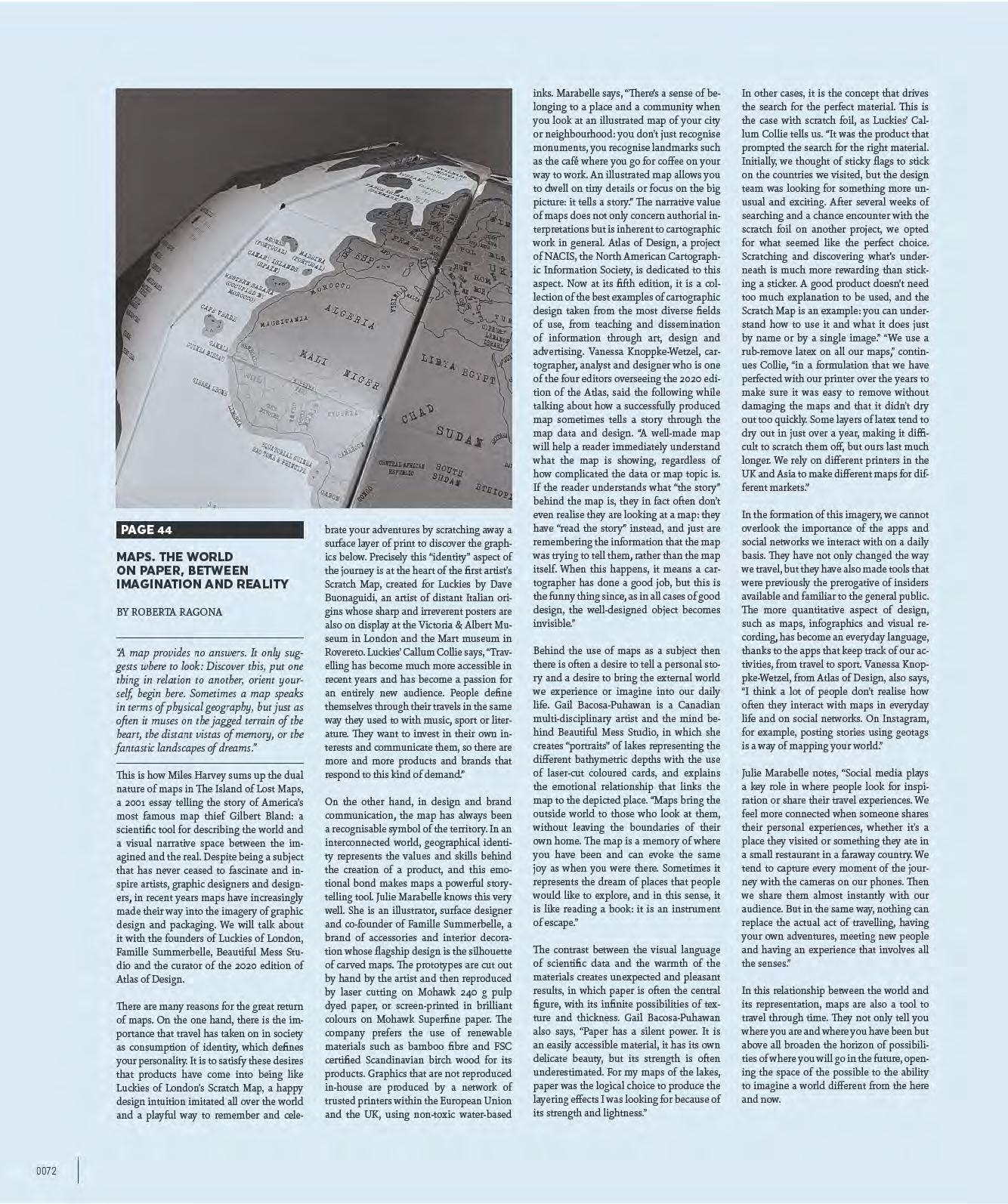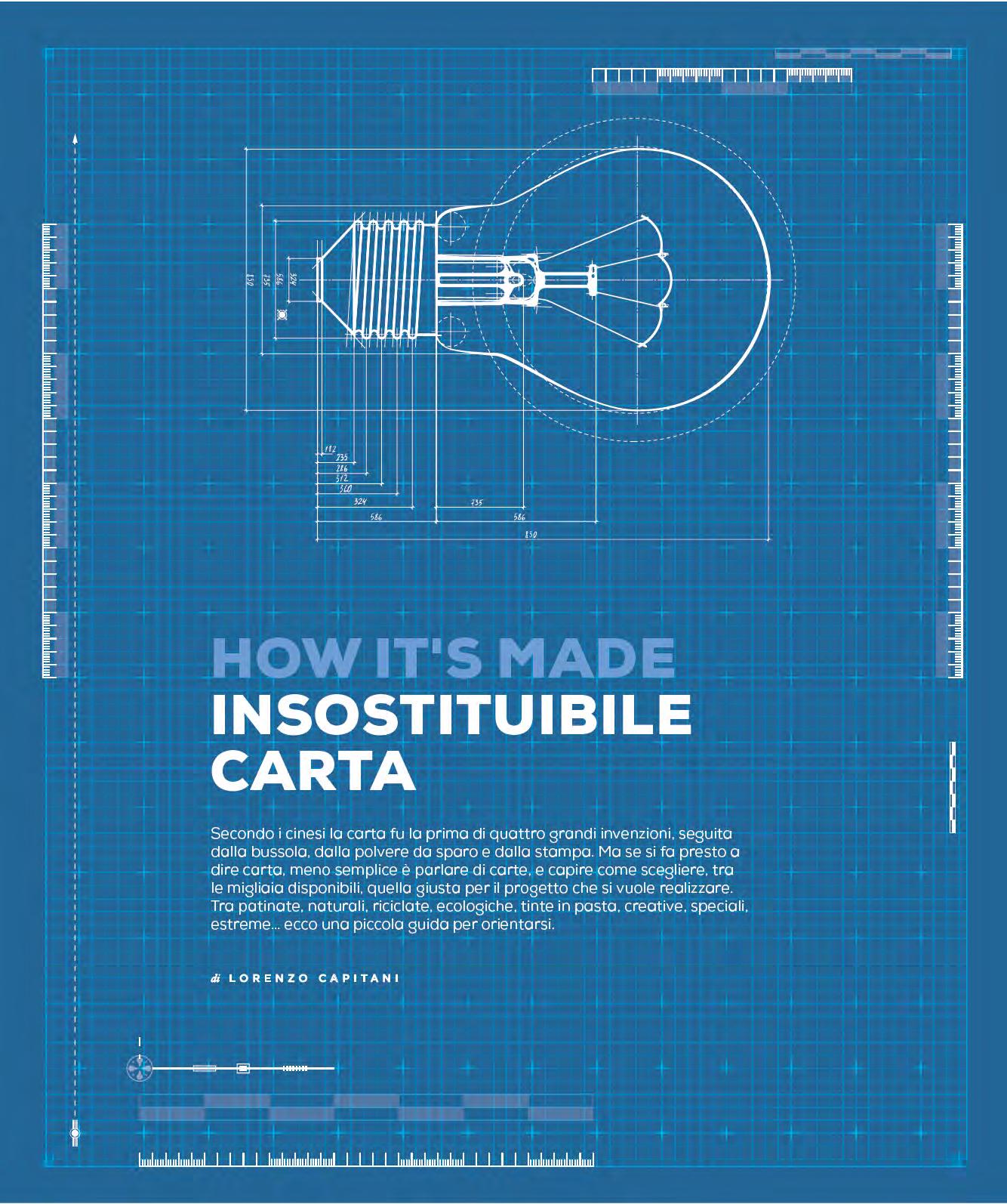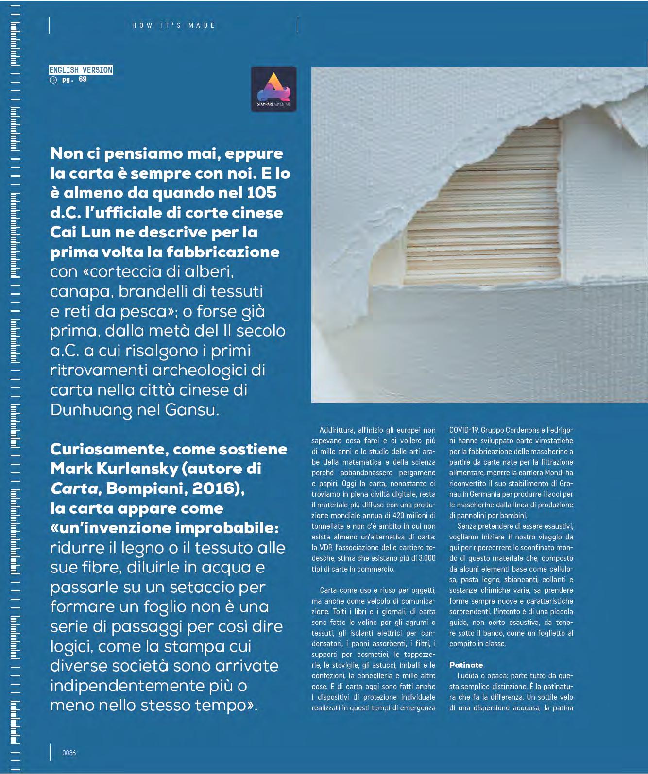 mills’ cuts, using up to 50 -100% of the recovered fibres. The reuse takes place after a particular chemical process removes the inks from the fibres. It should not be confused with recyclable paper, i.e. paper that can be reclaimed up to six times after its first use thus preserving natural resources. Recycled paper can be coated or uncoated and can have a natural look, tending towards grey, or it can have a high degree of whiteness. Let’s debunk the myth of the poor quality of this type of paper: recycled paper has a condition similar to virgin cellulose paper, as well as a lower environmental impact. It is used for art books, institutional financial reports, catalogues, postcards, brochures and invitations. Yet not all papers are suitable for making recycled paper. According to Comieco, if the paper or cardboard has been soiled, it cannot be sorted - so no tissues or greasy kitchen towels. Obviously, paper with synthetic parts or non-cellulose materials, such as paper laminated with aluminium or plastic, receipts and POS receipts cannot be recycled. This is one of the most obvious mistakes: they are made of thermal paper where the ink is directly in the fibre and is activated by heat. Processing waste paper results in a fibre loss of about 20-25% each time, so the same waste paper can be reused about 4 or 5 times. Given this situation, it is evident that it will never be possible to eliminate the use of virgin cellulose; otherwise, the quality of all the paper produced will be degraded too much. Today one of the largest paper mills specialising in the production of recycled paper for offset and digital printing is Steinbeis Papier in Germany with an annual output of about 300,000 tons of paper. These are light-coated papers from the Charisma and Select line. The former is intended for reel printing characterised by low grammage for the printing of magazines, catalogues and advertising material; the latter, with grammages up to 130 g/m² and excellent resistance to creasing and finishing, is intended for covers.