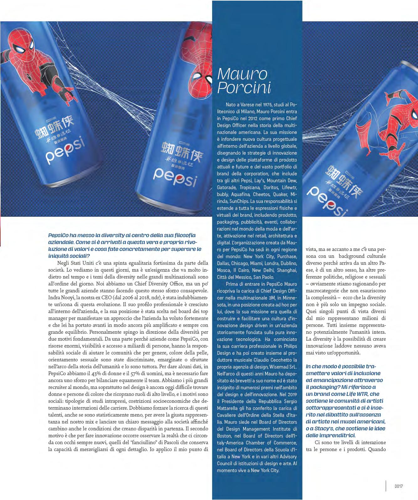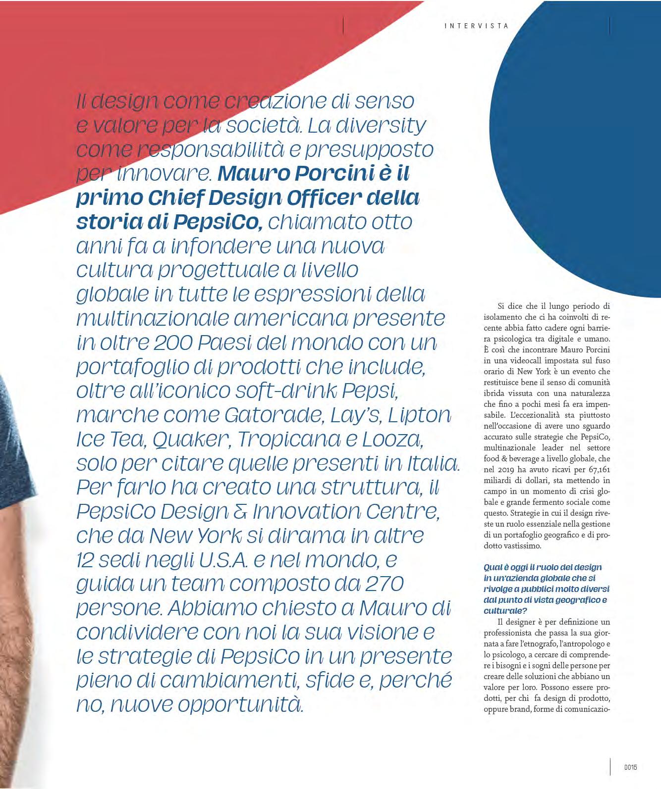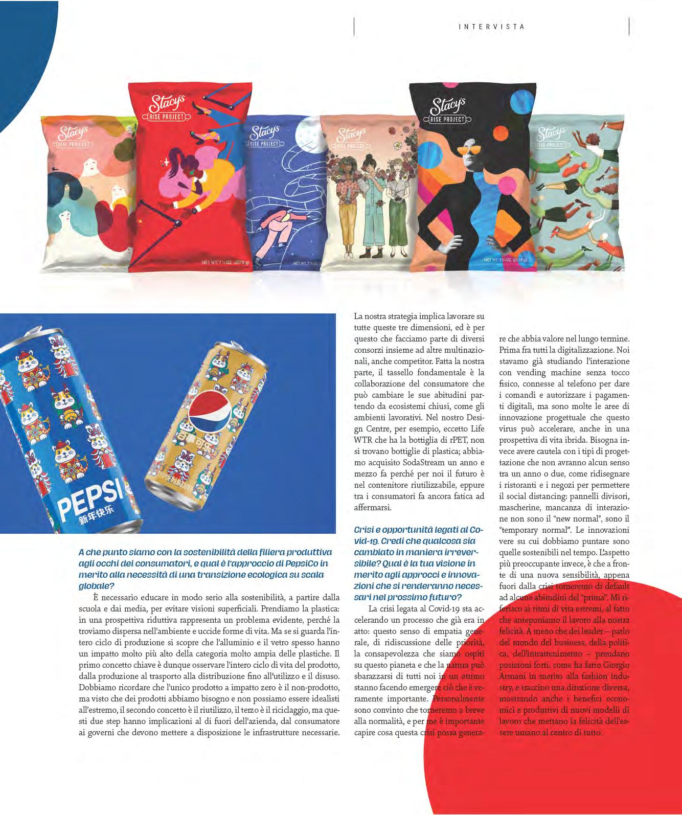 ro Porcini like this, in a video call in the New York time zone, is an event that properly restores the sense of a naturally lived hybrid community that until a few months ago had been unthinkable. The exceptional event is for having a detailed look at the strategies that PepsiCo - leading multinational in the global food & beverage sector with 2019 revenues of over $67 billion - is putting in place at a time of global crisis and considerable social unrest such as this. Strategies in which design plays an essential role in the management of a truly vast geographic and product portfolio.