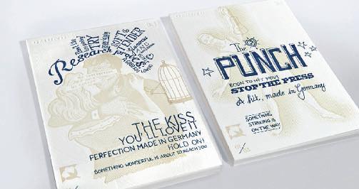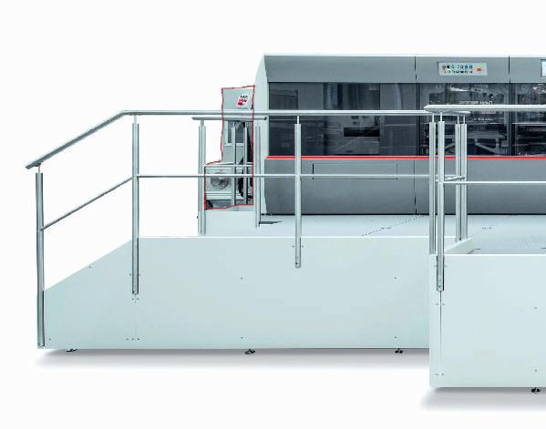 «Avevamo provato la macchina già nel 2009 e le sue cara eristiche tecnologiche estremamente innovative», spiega Meana, «ci hanno portato a ordinarla ad aprile dell’anno scorso, un mese prima di Drupa, e ad installarla sei mesi dopo, a o obre. Certo, i nostri fornitori abituali non l’ hanno presa bene, ma d’altronde il modello che abbiamo scelto, già collaudato con successo da altre realtà analoghe alla nostra in tu o il mondo da ben o o anni, ha cara eristiche uniche nel suo genere. Innanzitu o» continua Meana «un’o ima accessibilità alla macchina e, ciò che ci ha maggiormente impressionati, un sistema di trasferimento del foil molto semplice ma complesso al tempo stesso, oltre ad altri interessanti de agli tecnici e applicativi. In ne, un sistema di regolazione della pressione concettualmente diverso da altri modelli. La macchina lavora su due turni tu i i giorni ed e e ua lavorazioni di stampa a caldo e stampa a caldo con rilievo. Rispe o alle altre macchine presenti in reparto viene utilizzata per le tirature più lunghe, grazie alla sua elevata produ ività. In questo momento sta e e uando la stampa a caldo di cofane i per champagne Dom Pérignon su una carta Gmund molto pregiata e particolare». Il modello è top di gamma per l’elevata qualità e produ ività. Tra le cara eristiche salienti: una pressione no a 350 tonnellate metriche sul supporto; l’elevato tempo di “permanenza in pressione” che perme e di stampare a caldo anche materiali molto particolari; il sistema breve ato VACUFOIL per il trasporto del foil, che consente di movimentare anche fogli di grandi dimensioni (1060x760 mm) alla velocità massima di 8.000 fogli/ora.