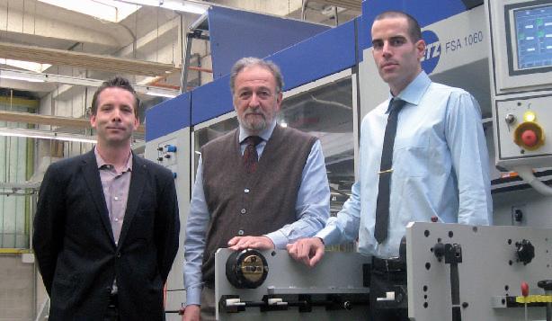 Una partnership di successo tra due “eccellenze”. Davanti alla nuova Gietz FSA 1060 Foil Commander, Giuseppe Meana, direttore generale di Pusterla 1880, tra Hansjoerg Gietz (a sinistra) e Nicola Micalizzi, rispettivamente managing director e area sales manager di Gietz.