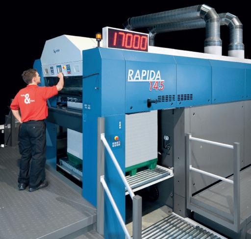 Speedmaster 52, i tempi produ ivi si sono drasticamente rido i, perché l’etiche a viene stampata in b/v e verniciata in un unico passaggio.
