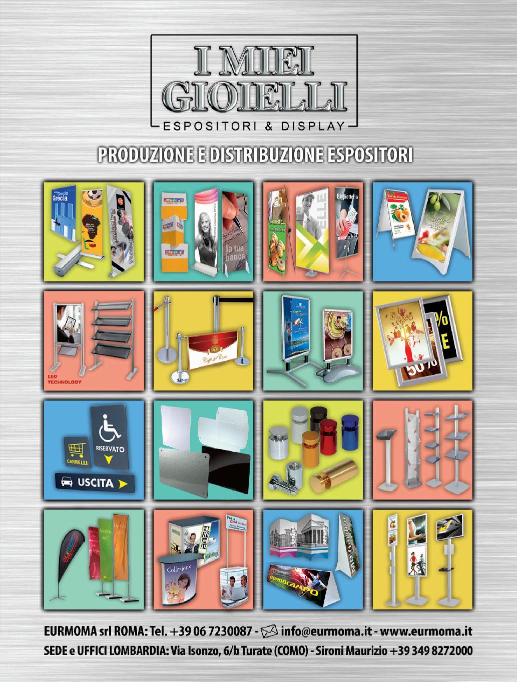 Eurmoma punta sugli eventi fieristici e non sbaglia. L’azienda romana ha partecipato, lo scorso ottobre, a Viscom Italia, fiera di riferimento per tutto il mercato della comunicazione visiva. Presente con due stand, Eurmoma ha spopolato tra il pubblico, attirando l’attenzione di tutti i passanti non solo con i prodotti proposti, ma anche con il design degli spazi espositivi. “Quest’anno abbiamo voluto creare una rottura netta con i trend degli anni precedenti, puntando su linee semplici e pulite e su un concept elegante e moderno, dall’impatto visivo notevole e coinvolgente”, ha dichiarato Ippolito Bassani, titolare di Eurmoma. Due i focus della strategia di Eurmoma a Viscom: la linea di espositori I Miei Gioielli, prodotta in gran parte da Eurmoma e diventata ormai un sotto-brand aziendale di grande successo, e la gamma di autoadesivi e biadesivi di qualità tedesca Orafol.