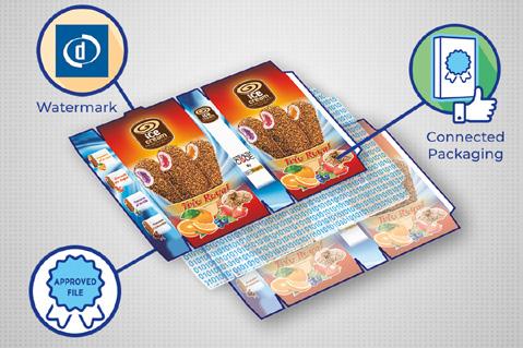 Te addition of anti-counterfeiting solutions requires a production chain that is well informed and well planned. Apart from creating security elements in a printed object, it will be necessary to make it not only possible but also easy to de-codify those elements in the rest of the production chain, right up to the consumer. Tat’s why techniques like Phantom work in which the images used for the brand’s protection are visible to the naked eye only by tilting the printed object at an angle. Scanners and photocopiers can’t achieve this result. On the digital printing front, for example, HP ofers anti-counterfeiting security elements that are generated by a series of algorithms through a dedicated software (HP Smart Stream Designer) and printed with ElectroInk on all the HP Indigo digital printing machines. Tese elements include micro texts, micro 2D barcodes, Guilloches and special security fonts. Tese graphic images, printed on labels and packaging, are difcult to reproduce and can be seen with the naked eye, but anyone looking at them wouldn’t say they were anti-counterfeiting devices but decorative items. Teir purpose instead is protection. Xeikon has used its experience in printing scratch lottery tickets, cheques, licences,