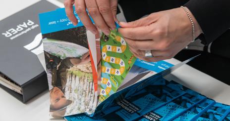 tickets, vouchers and passports to fine tune a proprietary toner that, alongside ‘sly’ graphics solutions makes the security levels unique and extremely difcult and expensive to counterfeit. Tis is the case with the micro-tests of up to 1.0 point, which is very difcult to copy, duplicate or reproduce. It is also true with very special line drawings that are highly irregular and complex printed objects such as the fifth colour that a traditional printer can only simulate. Tere is also another extremely secure and transparent toner that is only visible under UV light or black light with a wavelength of 350-385 nm. Te Stealth Code solution is also very promising, which is distributed in Italy by BeeGraphic and has been, for example, adopted by Pusterla 1880. It’s a technology based on a really invisible coding. It’s a copyrighted solution that involves inserting the unique data within the image. It’s imperceptible to the eye and can be placed on the entire surface. Te code is inserted using an inclusive technology that can’t be replicated or duplicated. All you need to do is read the printed object with a smartphone or a tablet using the free Stealth Code app, which can be personalised on request. Stealth Code allows interactive communication with the consumer, traceability and real-time modification. Te only limit is the printing on black backgrounds where it becomes invisible, while it can be easily done on four-colours and Pantone hues; it doesn’t need particular printing processes or special inks and doesn’t afect the graphic layout.