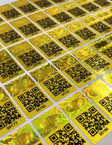 Te simplest form of protection is printing – direct or on labels. Simple doesn’t mean easy. It needs technical but also design skill. In very simple terms it’s necessary to consider the type of use that will be made of the label or packaging, of the distribution methods for the goods, the intended uses, the primary or secondary packaging, the media and, consequently, the materials and the application methods. Holograms, mono or bi-dimensional codes are now very widespread even in highly developed versions that change colour on the basis of temperature or on the light sources they’re exposed to: this is the case with digital watermarks, inks that become fluorescent when exposed to UV sources or microscopic markers contained in traditional inks or in digital printing toners. To this family also belong the inks that are iridescent based on the angle of observation not only for ofset applications but also flexo-printing, screen printing or digital printing, the metachromatic screen printing inks that change colour according to the light, and the thermo-chromatic inks that instead change on the basis of temperature.