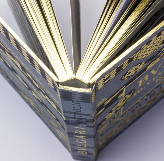 • Booklet con segnature non rifilate in testa, composto da cope ina in Fedrigoni Constellation Neve stampata a 4 colori + caldo e interno in Soporset Premium Offset (Nava Press)