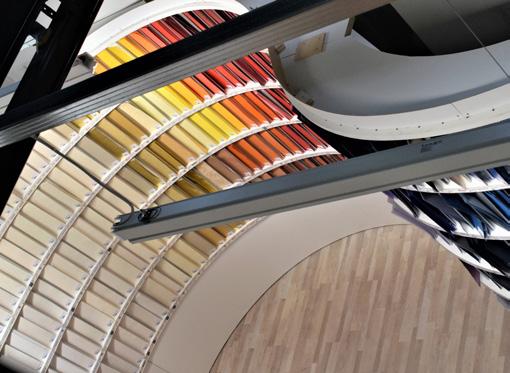 materials. Te company has a staf of over 50 people and an operational area of 3,500 sq.m. where there are the ofces and logistics centre. Here the wide spaces available allow flexible warehousing of the “parent reels” (jumbo) from Kurz, and their cutting in the format required by the client. Tanks to its rigorous company policies Luxoro today is a completely zero impact company.