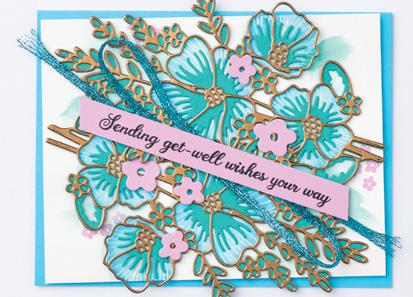 Take your creations to the next level by making them shimmer. Products such as Gilded Leafing (p. 143), Shimmery White Embossing Paste (p. 128), and Wink of Stella® (p. 128) are designed to shine.