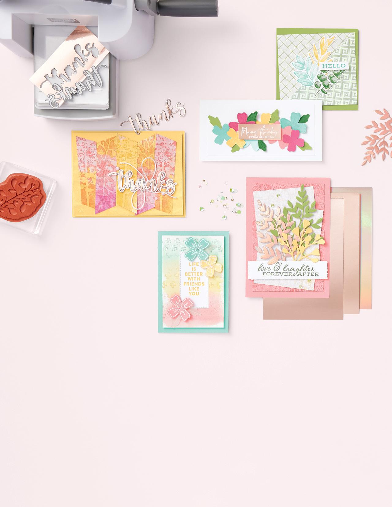 Use the Stampin’ Cut & Emboss Machine with dies and embossing folders to create die cuts and add texture to your creations. See both machines, along with additional supplies, on p. 156–159.