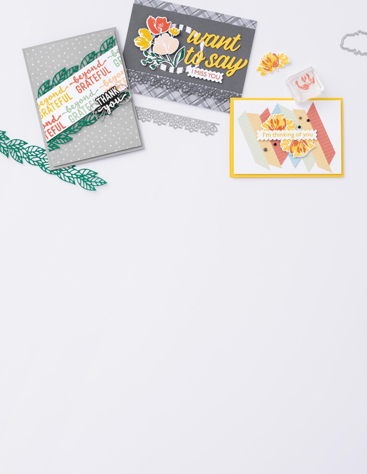 10 cling stamps (suggested clear blocks: b, c, d, h) Coordinates with Poppy Moments Dies (p. 173)