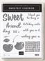 22 photopolymer stamps (suggested clear blocks: a, b, e, h) Coordinates with Sending Dies (p. 166)