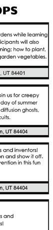 Learn the fundamental skills necessary for surviving on your own in the wilderness through activities and experiments. Recommended for children ages 8-12. For more information or to register, call 801-337-2639.