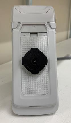 Line up the back of the hardware device with the scanner handle and twist to the right until it locks in place. When connecting the pieces back together after charging you must ensure that they are paired correctly-Hardware device #1 MUST be connected to handle#1 in order for them to connect correctly as stated on the previous page.