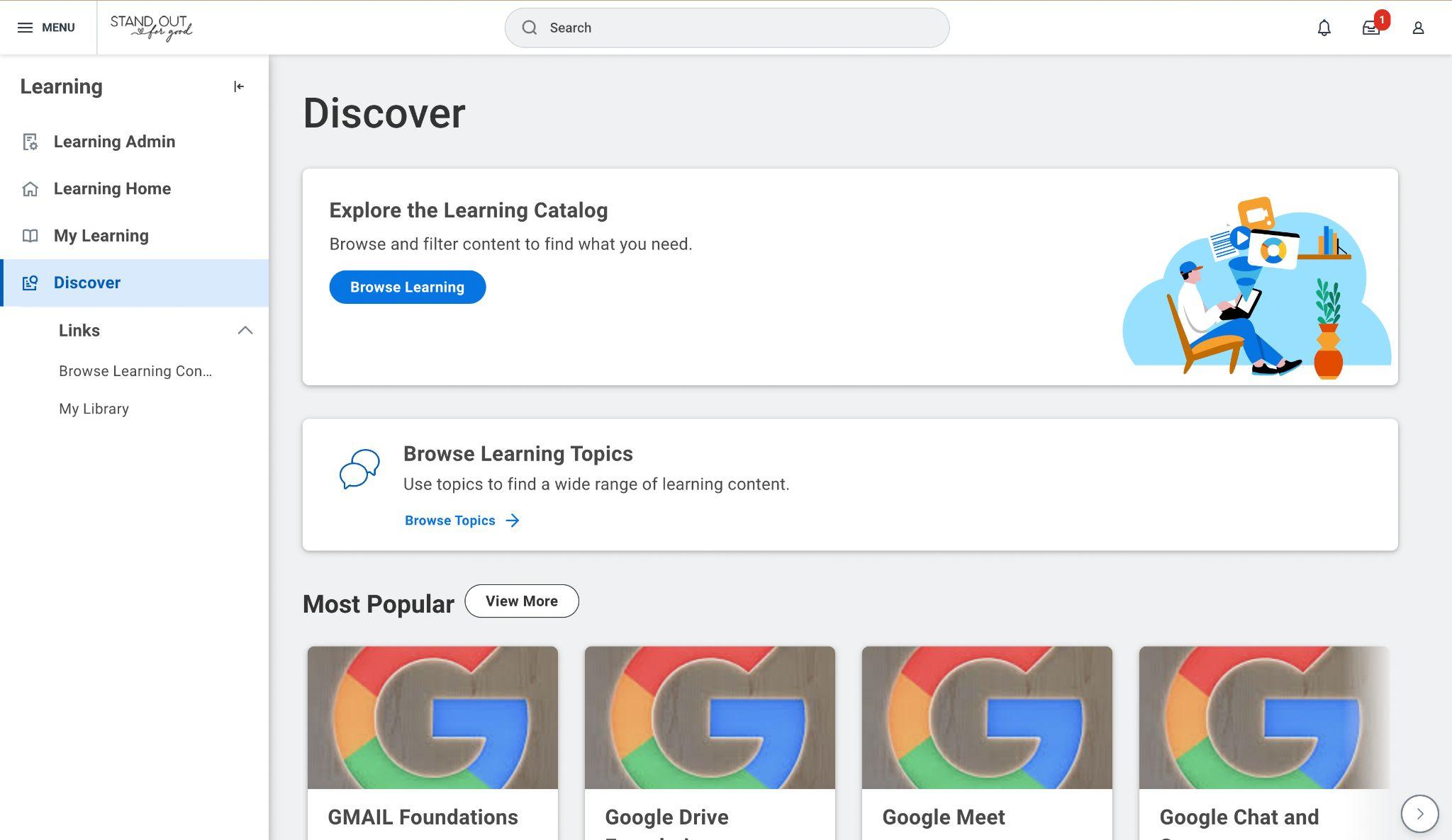 THIS WILL OPEN YOUR LEARNING HOME SCREEN. FROM THE LEARNING HOME SCREEN CHOOSE DISCOVER, TO ACCESS THE TRAINING CATALOG.
